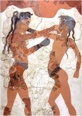 Afbeeldingen die rond 1200 voor Christus gedateerd konden werden zijn gevonden in het paleis van Koning Minos op Kreta. Deze variant leek waarschijnlijk op het hedendaagse Thai Boksen want er werden ook traptechnieken afgebeeld.