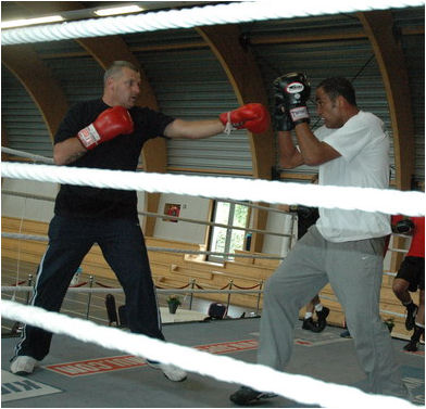 Floor Dekker in actie tijdens een boksworkshop georganiseerd in samenwerking met de